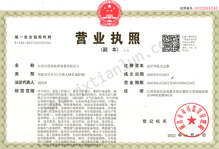 2005年:天倫進入高新開發區留學生創業園,進入快速發展階段,成立江西天倫水處理設備有限公司